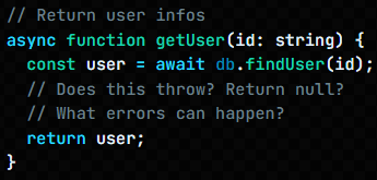 TypeScript can't help you with traditional error handling you're left wondering what exceptions might be thrown and when.